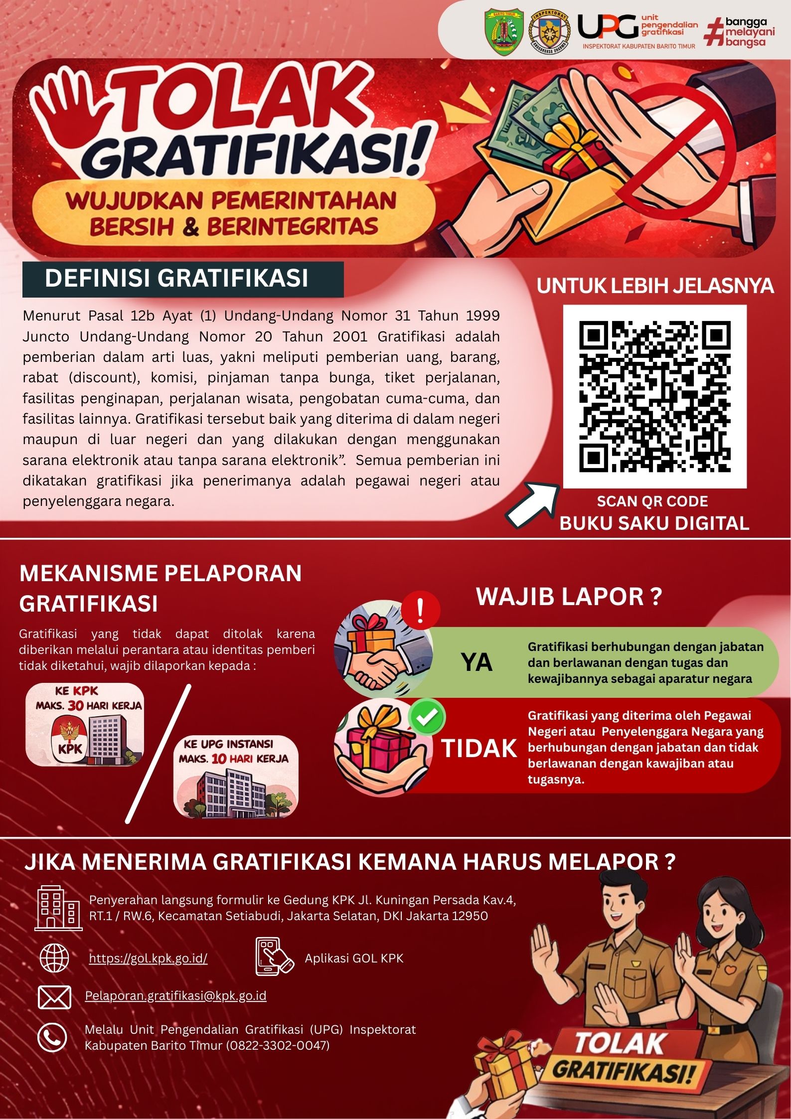 Dalam rangka meningkatkan pemahaman seluruh ASN dan masyarakat mengenai gratifikasi, Inspektorat Kabupaten Barito Timur telah menyusun Buku Saku Digital dan ...